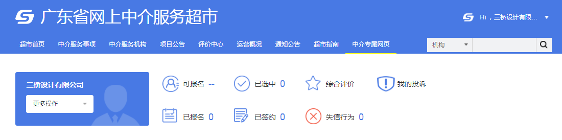 我院在广东省网上中介服务超市成功录入基本资料,待法人实名核验后完成最终的注册登记。“一个平台、全省共用,一地入驻、全省通行,一处失信、全省受限,一体管理、分级使用”,为我院准备全面进入广东省市场做好充足的准备。